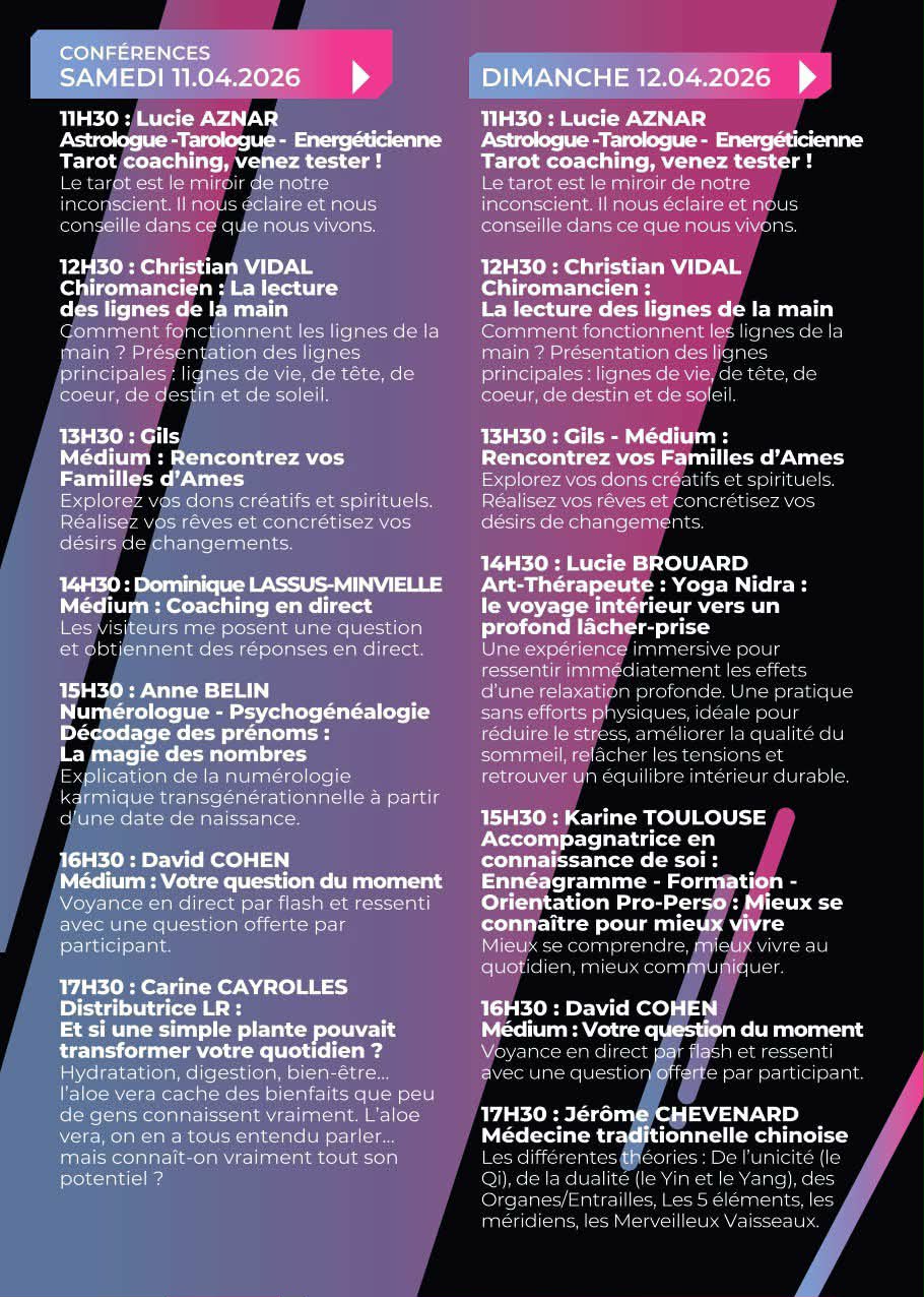 - Conférence sur le tarot de Marseille à 11h30 les 2 jours